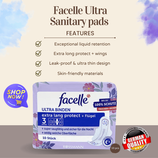 Facelle Ultra Pads, extra-long protect + wings - Pack of 10